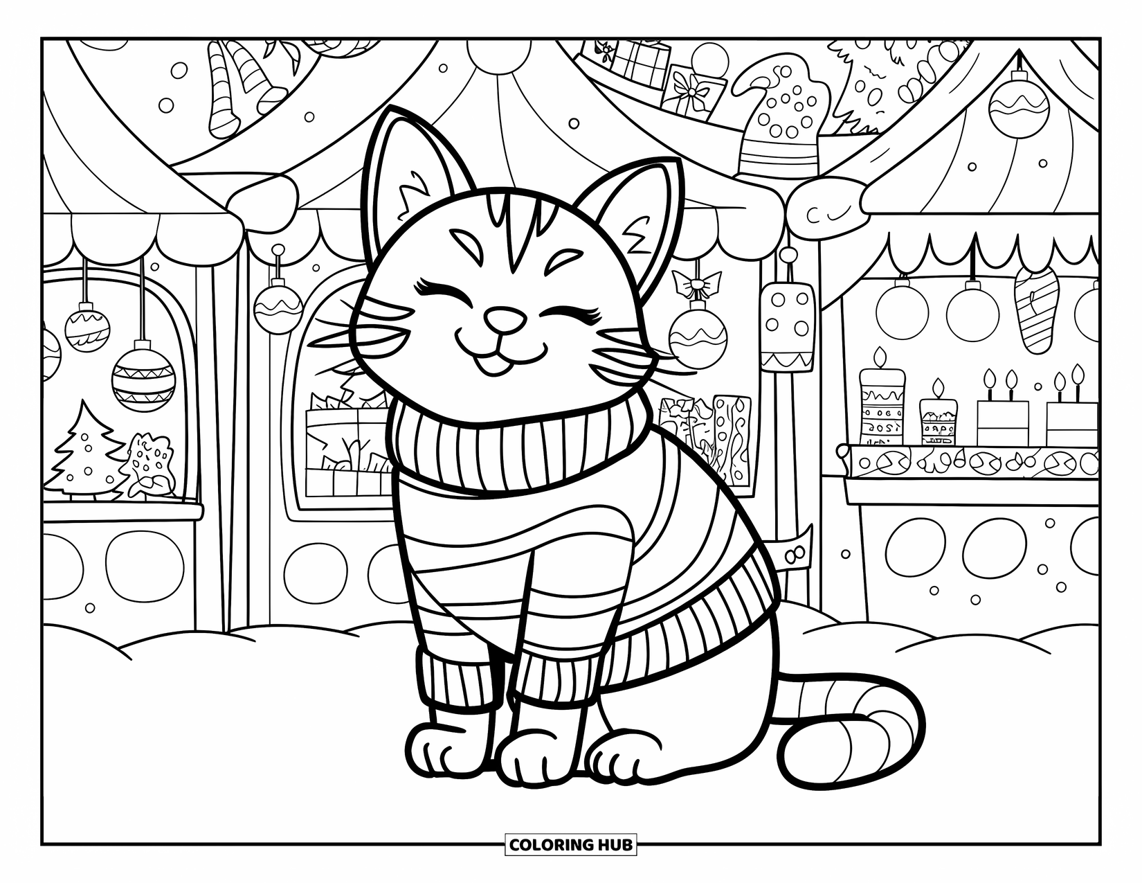 115+ Christmas Cat Coloring Pages for Kids & Adults (Free Printable PDFs)